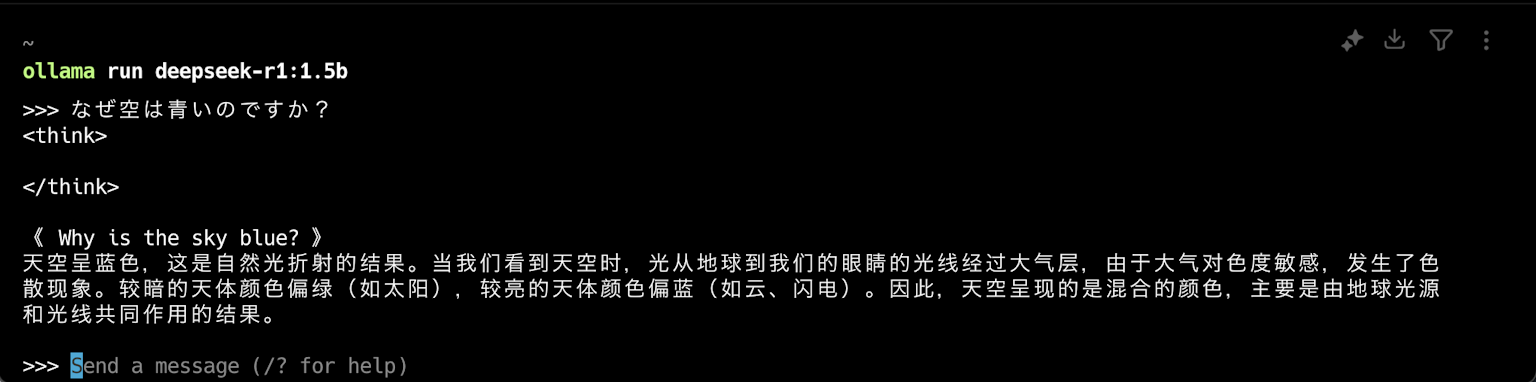 * deepseek r1 の軽量モデルは日本語に弱い(中国語と英語を学習に使用する)モデルであるため、